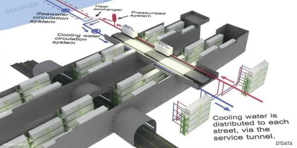 在第一阶段的建设中,Lefdal矿山数据中心在矿山的第三层安装了45MW(兆瓦)的冷却设施。而冷却液则是使用从外面的峡湾抽取的1640英尺深(约合500米)的海水,海水会与数据中心内的冷却循环系统进行热交换。