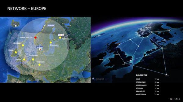 虽然挪威西北海岸线听上去与任何地方都相距甚远,但Lefdal矿山数据中心承诺其网络性能将会在大多数应用程序的极限范围内。该数据中心到伦敦是17毫秒往返延时,到阿姆斯特丹则是21毫秒,这是通过与有横跨北海线缆的光纤运营商的合作实现的。